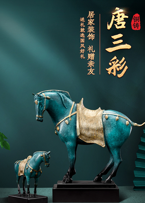 Brass horse ornaments bronze Tang three-color horse zodiac craft gifts office home porch ornaments opening gifts