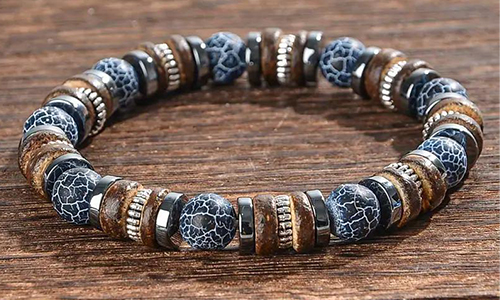 Handmade beaded style fossil bracelet men's retro style pine stone wood beads coconut shell bracelet